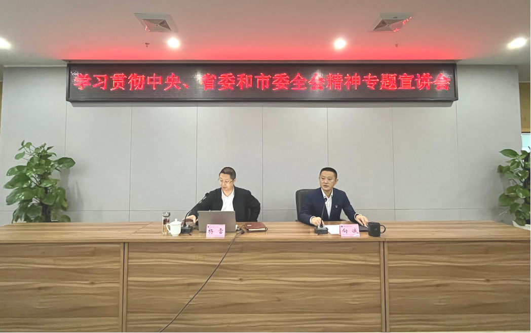 ? ? 1月12日上午,市國(guó)資委黨委書(shū)記楊雷到遂寧興業(yè)集團(tuán),對(duì)中央、省委和市委全會(huì)精神作專(zhuān)題宣講。會(huì)議由集團(tuán)黨委副書(shū)記、總經(jīng)理向誠(chéng)主持。集團(tuán)黨委班子成員、中層管理干部、員工代表,以及直屬企業(yè)高管、黨群工作部門(mén)負(fù)責(zé)同志現(xiàn)場(chǎng)聆聽(tīng)宣講。