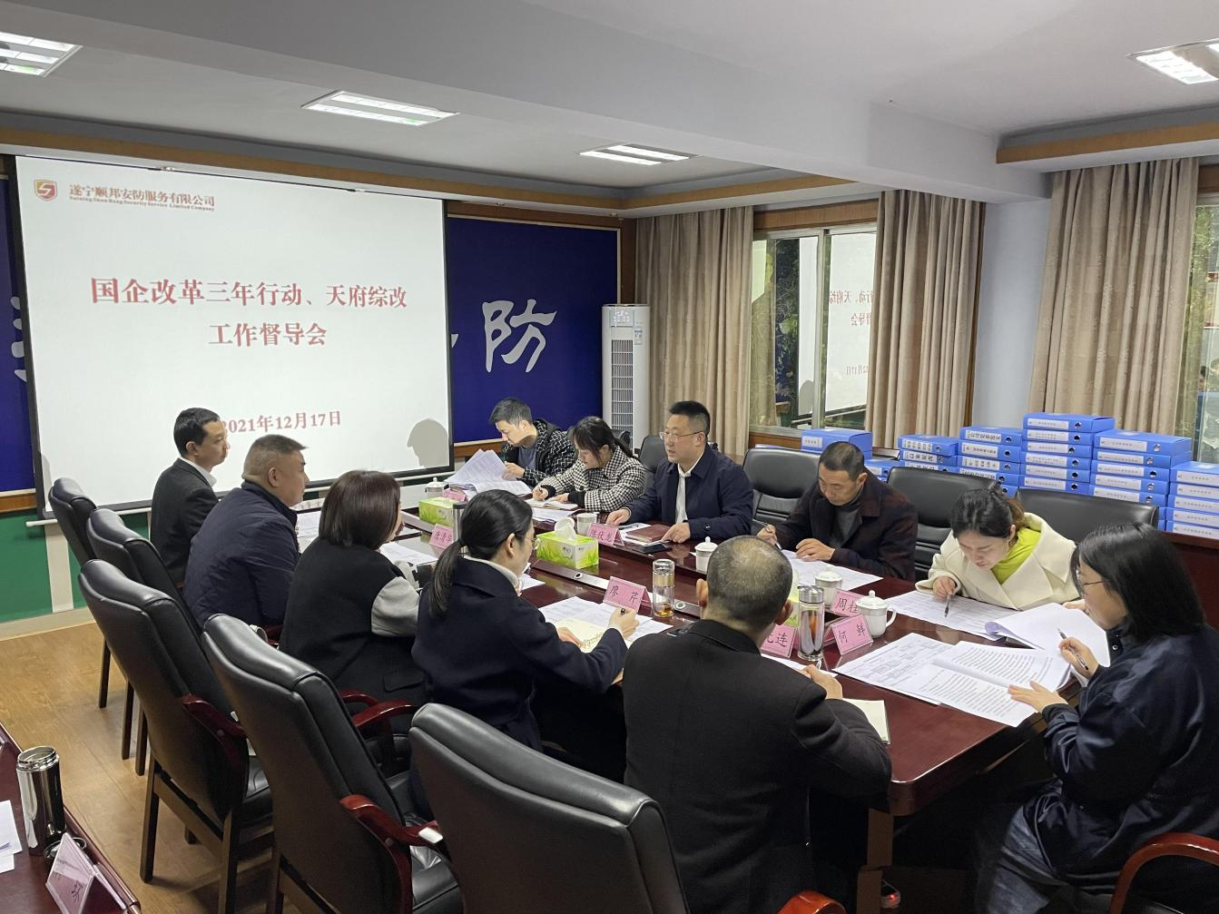 ? ? 12月17日,遂寧市國(guó)資委黨委委員、副主任陳伏龍一行到順邦安防公司督導(dǎo)國(guó)企改革三年行動(dòng)、天府綜改相關(guān)工作。遂寧興業(yè)集團(tuán)黨委委員、財(cái)務(wù)總監(jiān)何玫,順邦安防公司黨委書記、董事長(zhǎng)、總經(jīng)理唐清華,黨委副書記、監(jiān)事會(huì)主席廖芹,副總經(jīng)理董奎、劉光連和公司全體中層干部參加督導(dǎo)會(huì)。