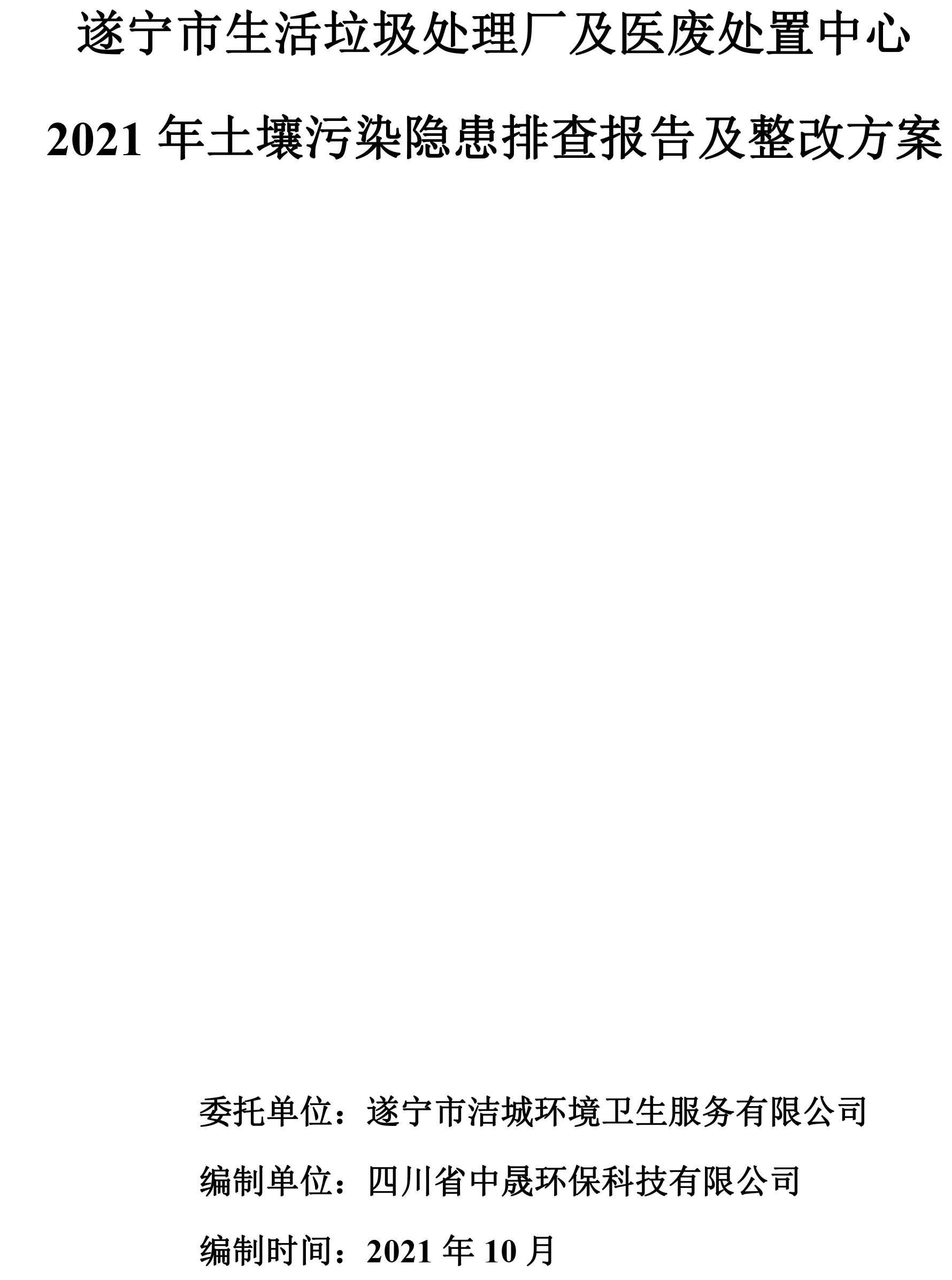 遂寧市生活垃圾處理廠及醫(yī)廢處置中心2021年土壤污染隱患排查報(bào)告及整改方案