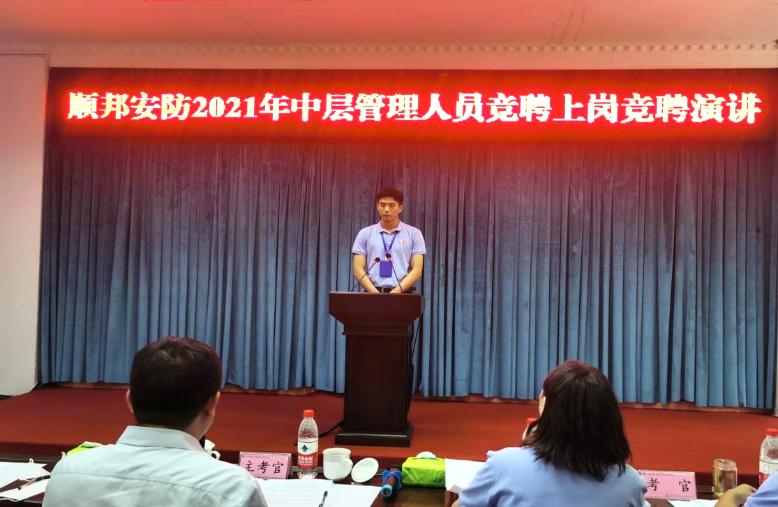 ? ? 為推進(jìn)后備人才培養(yǎng)發(fā)展戰(zhàn)略,營造比學(xué)趕超奮發(fā)向上的良好競爭氛圍,激勵員工愛崗敬業(yè)、開拓進(jìn)取,促進(jìn)企業(yè)高質(zhì)量轉(zhuǎn)型升級發(fā)展,8月24日,在市國資委黨委委員、二級調(diào)研員陳海軍,遂寧興業(yè)集團(tuán)黨委副書記、監(jiān)事會主席石鎮(zhèn)槐,集團(tuán)人力資源部的監(jiān)督指導(dǎo)下,順邦安防公司辦公室、督訓(xùn)部、市場部中層管理副職崗位競聘上崗正式拉開帷幕。